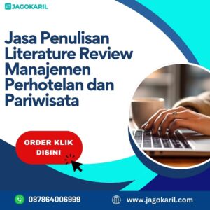 jagokaril.com berkomitmen untuk memberikan layanan penulisan literature review yang berkualitas tinggi, tepat waktu, dan sesuai dengan kebutuhan klien. Kami percaya bahwa literature review yang berkualitas adalah kunci keberhasilan sebuah penelitian. Oleh karena itu, kami selalu berusaha memberikan yang terbaik untuk membantu klien kami mencapai tujuan penelitian mereka. Hubungi kami sekarang juga untuk informasi lebih lanjut dan konsultasi gratis mengenai kebutuhan penulisan literature review Manajemen Perhotelan dan Pariwisata Anda. Kami siap membantu Anda dalam mencapai kesuksesan akademik.
